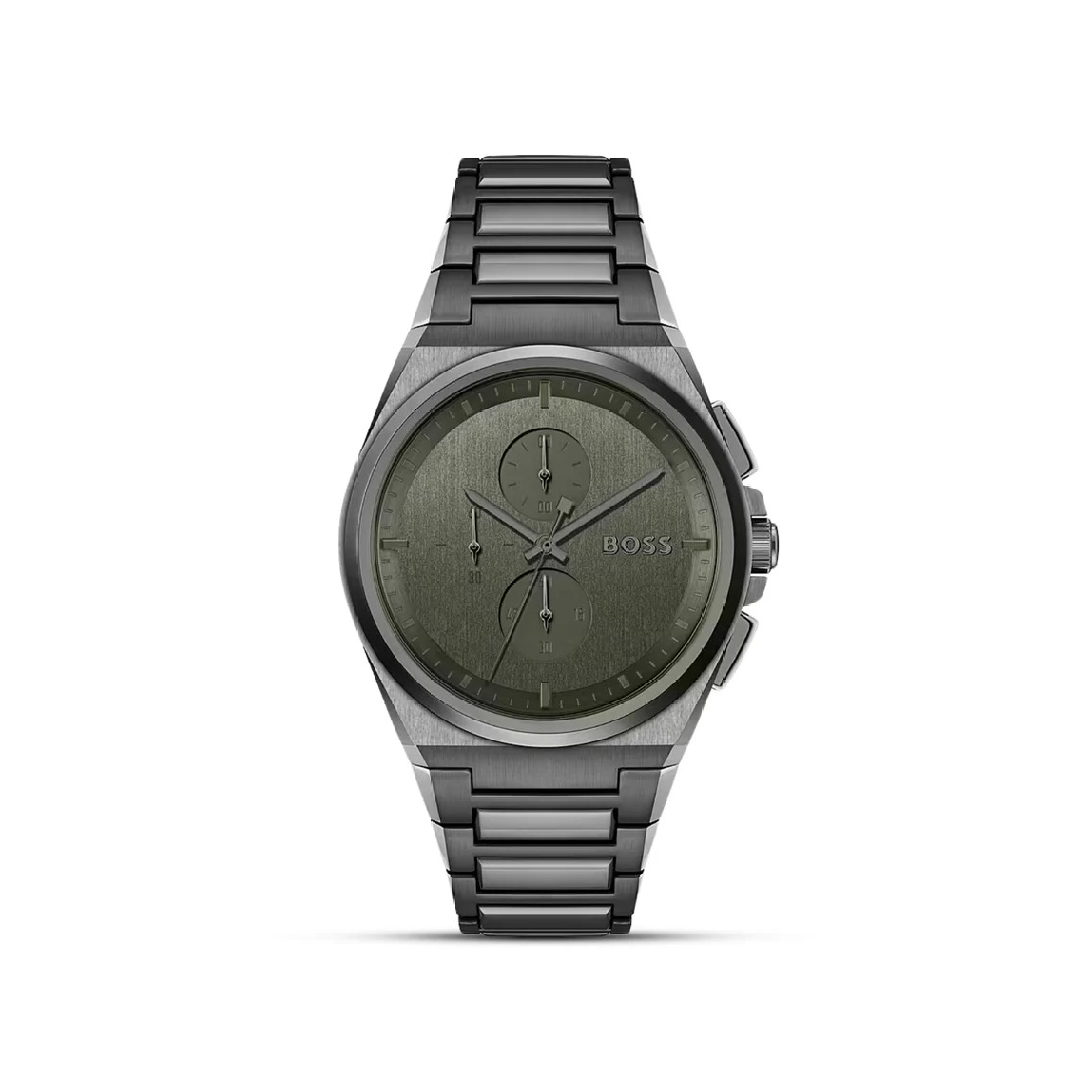Indulge in luxury with the Hugo Boss Steer Chronograph Men's Watch. This sophisticated timepiece boasts a stylish grey dial and precise chronograph movements. Elevate your style with this premium watch, perfect for any occasion.